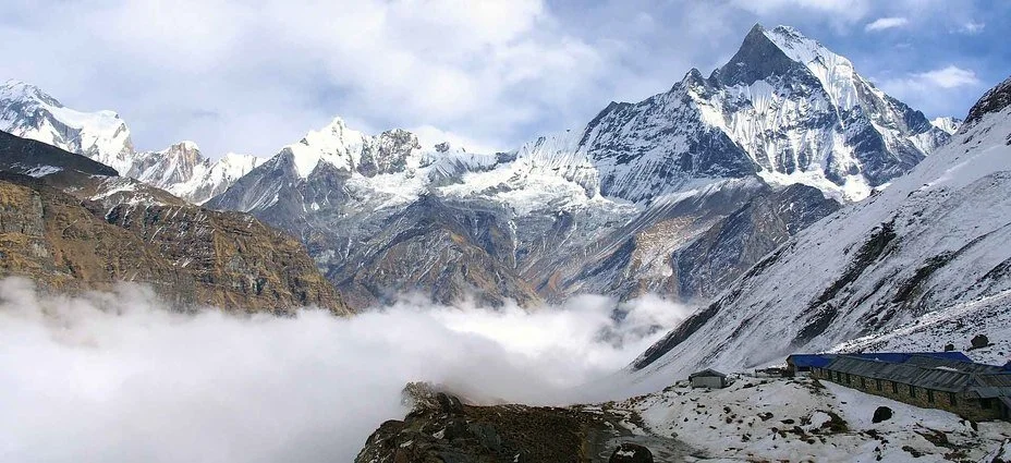 Today requires a significant altitude gain. It’s important to trek slowly. The route now journeys to the head of the valley, on a trail that is flanked by Hiun Chuli (6434m) on the left and Mardi Himal (5553m) and Machhapuchre (6997m) on the right. We will pass through several settlements before reaching Machhapuchre base camp that is situated at the terminal end of the South Annapurna glacier. In this clearing, you can enjoy close views of Tare Kang and Gangapurna in the north, and Machhapurche in the south east.